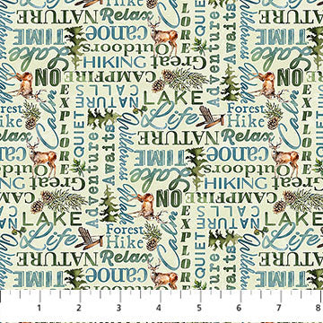 Lakeside Retreat DP28487-71 Lt Green Multi Words - Fat Quarter