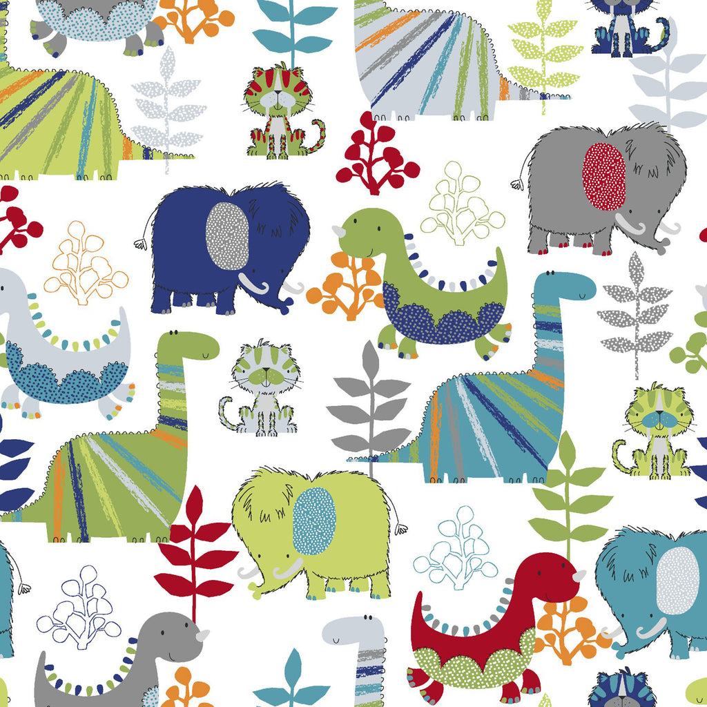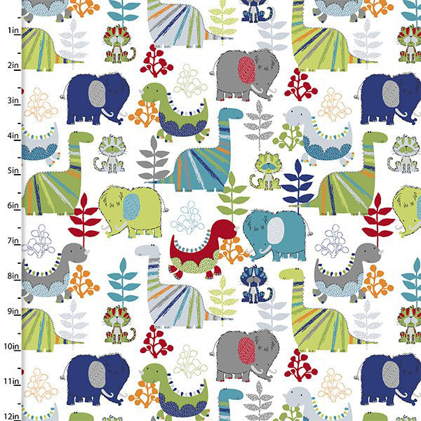 Dinos Toss Flannel 12504-WHITE-DR - Fat Quarter