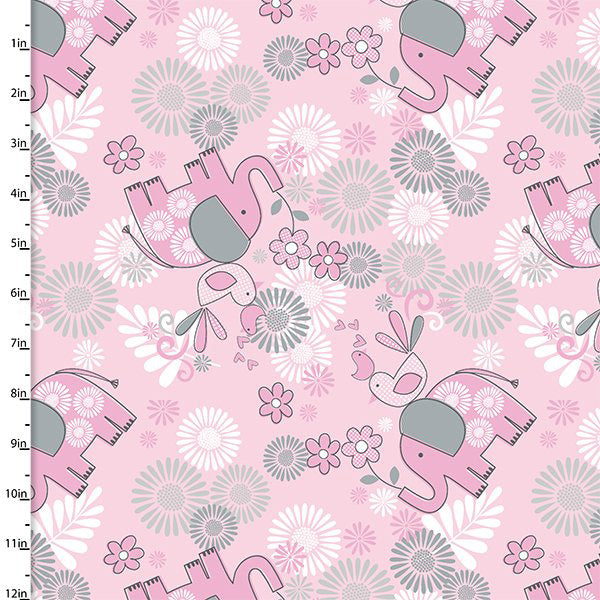 Mia Birds & Elephants Flannel 12428-BLUSH-DR - Fat Quarter