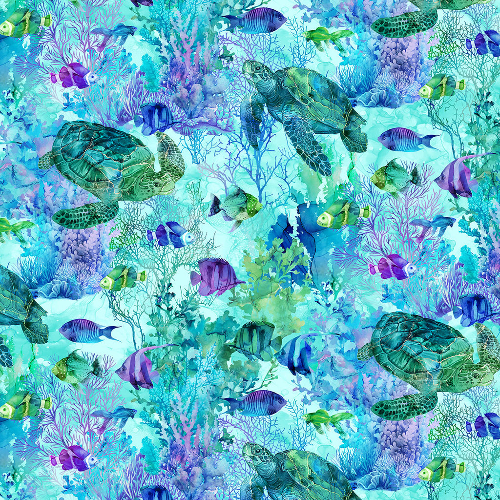 Coral Reef DP28877-66 Turtle & Fish Turq Multi (Preorder/Prepay: Read description for full details)