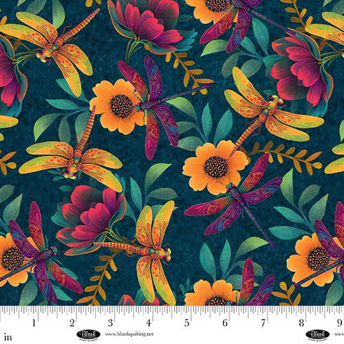 • 4453MK-76 Ocean Blue Dragonflies and Flowers.