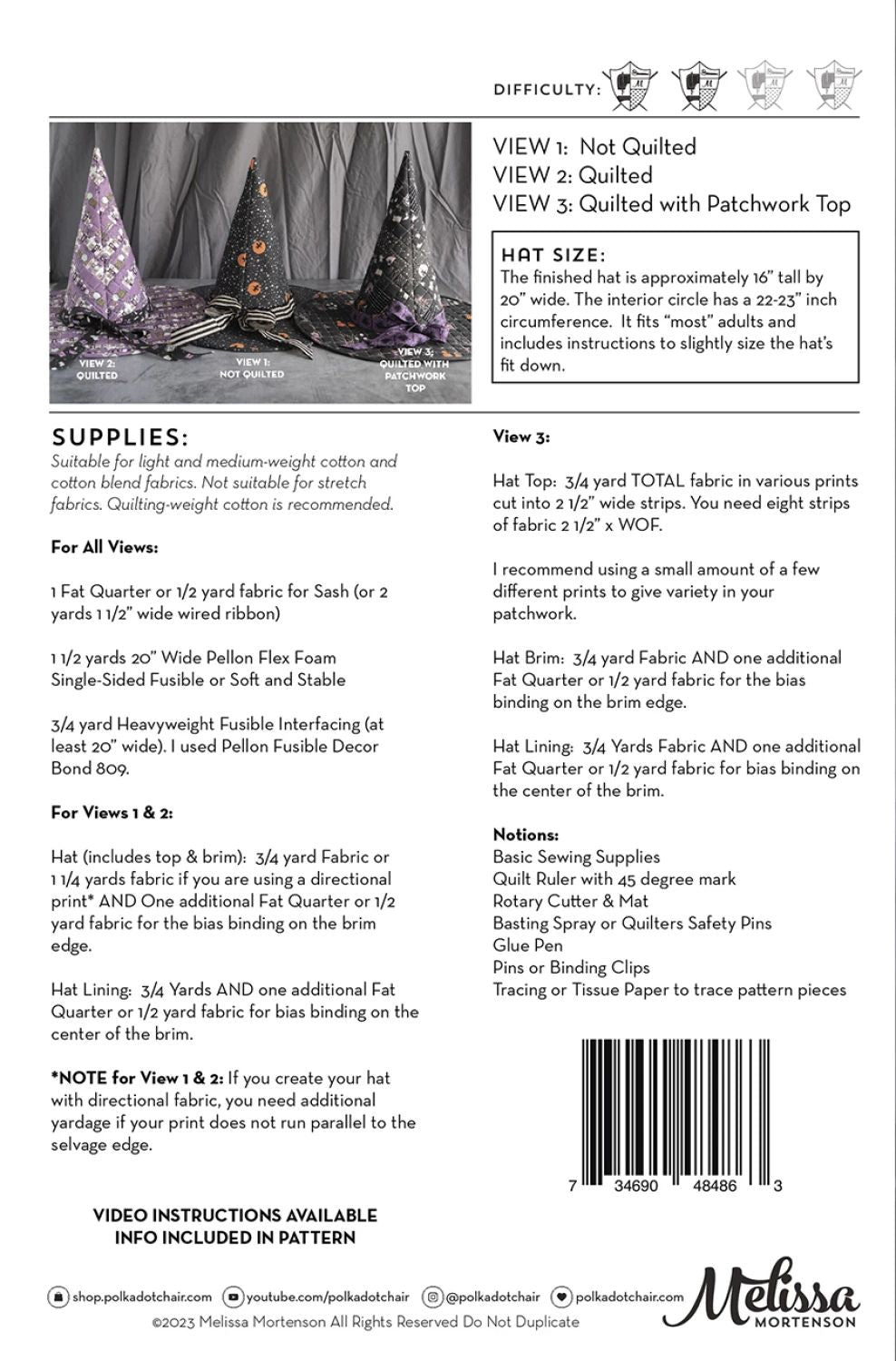 • The Spellbound Witch Hat Sewing pattern is a pattern for a quilted, lined, wearable Witch's Hat with an optional sash.