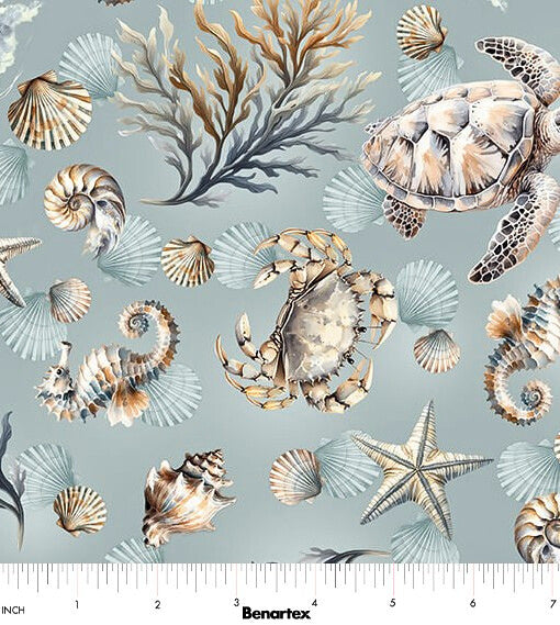 • Coral, jellyfish, starfish, seahorse, crab, turtle, seashell.