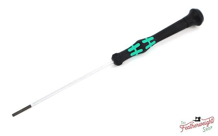 • The Wera Maintenance Small Screwdriver is perfect for the gib hook screw, all three of the bobbin case screws (including the very tiny latch screw), motor pulley screw, and most all other small screws on the Singer Featherweight.