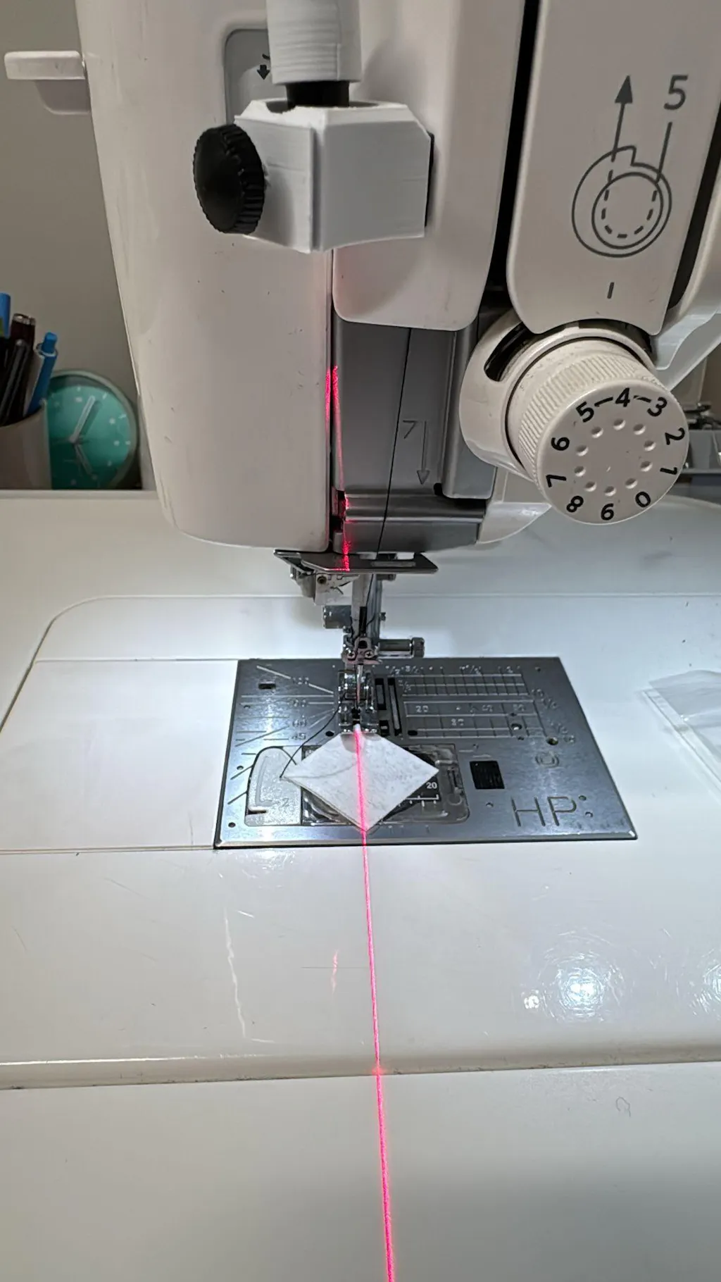 • Make sewing seams easier with our alignment laser that is hard mounted to the sewing machine to allow stability so the laser doesn’t move during operation. Sew Q is plugged in by a USB port and is adjustable by tightening a screw. The laser shines well with machine and room lights on.